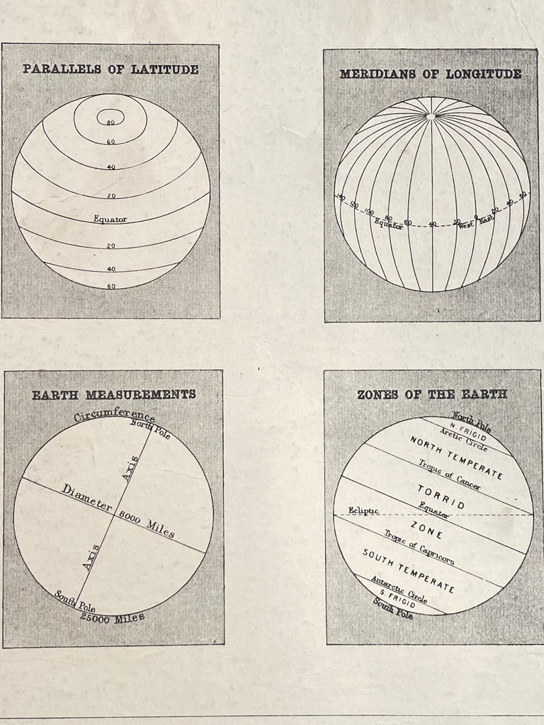On the inside is a guide to the dimensions of the earth, plus charming diagrams of longitude and latitide, and a great diagram explaining the curvature of the earth.